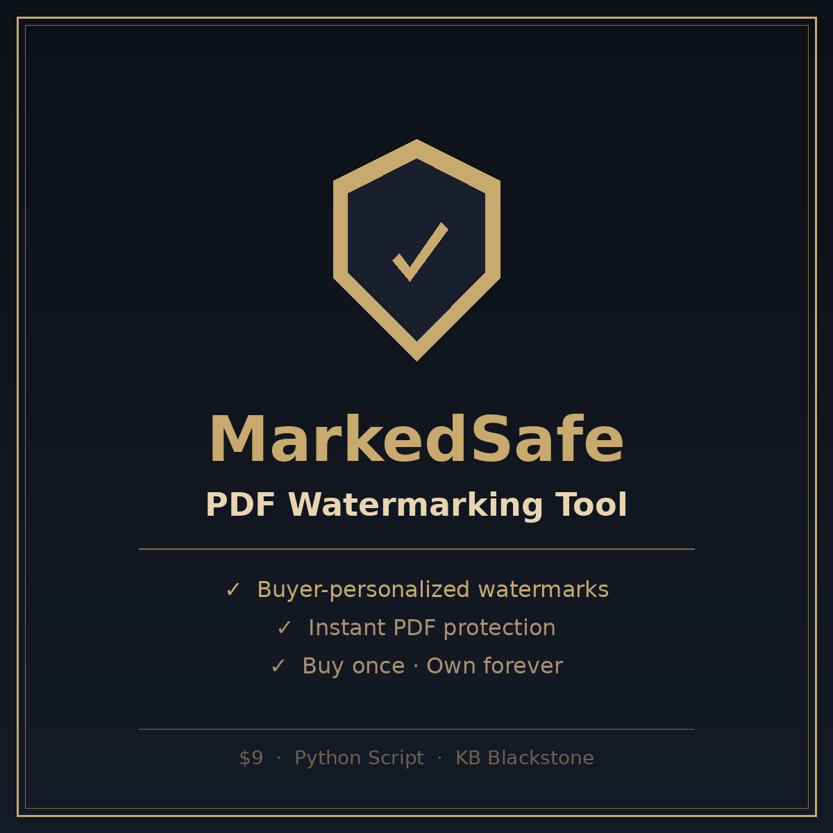 MarkedSafe is a Python-based PDF watermarking tool that lets you protect and personalize every PDF you sell or distribute. Add diagonal “Licensed to [Name]” watermarks automatically — no design skills required.